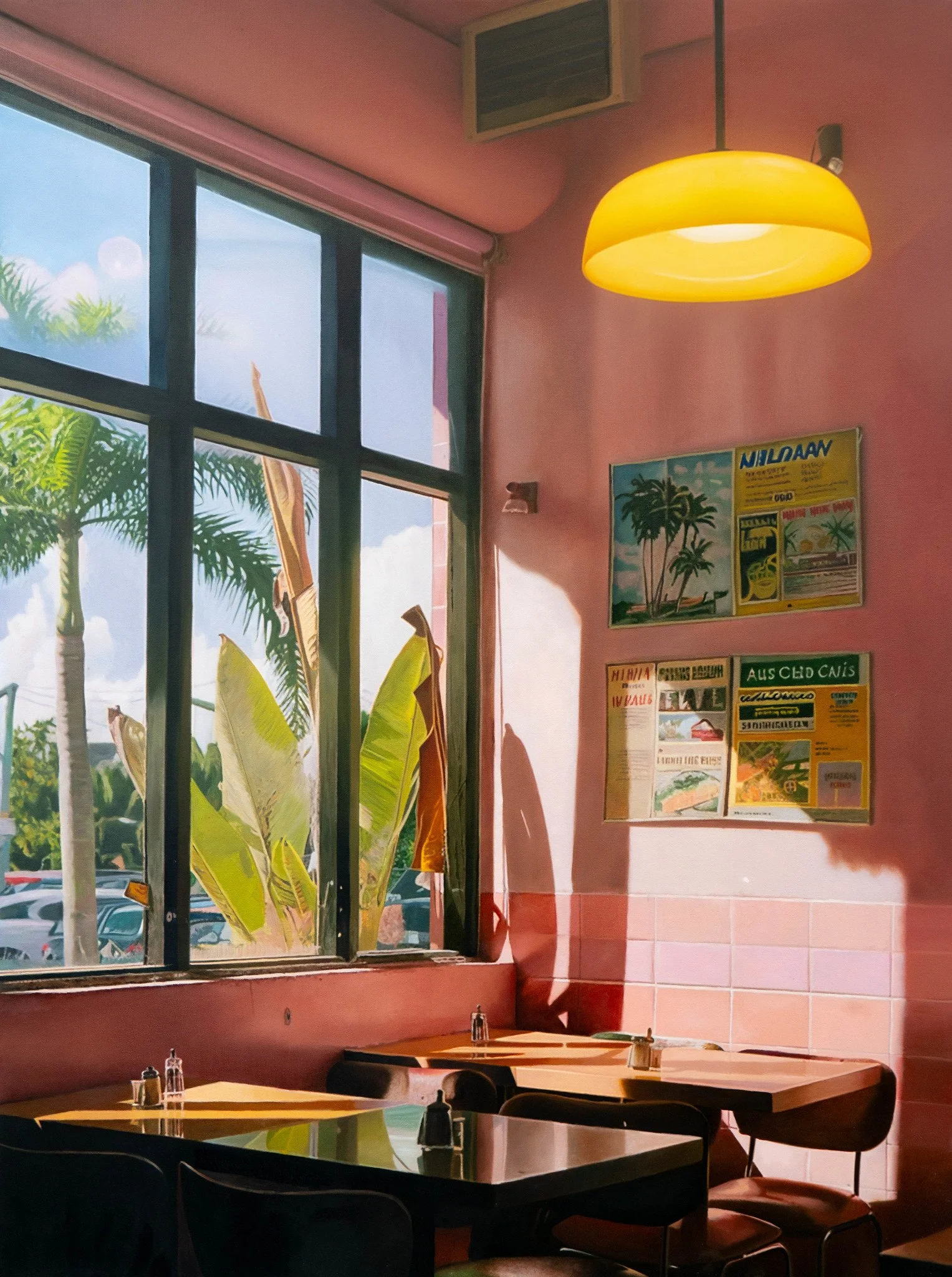 Yigal Ozeri, Rose Cafe, 2023, oil on canvas, 30 x 40 in. Courtesy of the artist and Corridor Contemporary